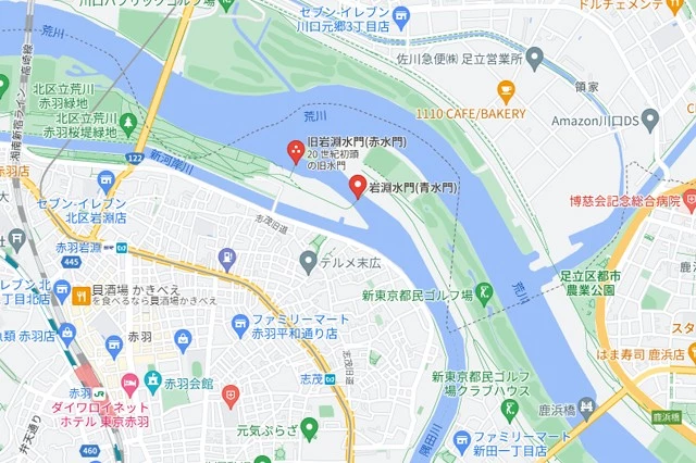 なお、この辺りは川も土手も全てが人工物でありながらも自然豊かなエリアになっていて、春はお花見、夏はバーベキューといったように四季折々の楽しみ方はもちろん、釣りやロードバイクなども楽しめるスポットとなっています。お花見シーズンには旧岩淵水門と新岩淵水門がライトアップされるので、ぜひお見逃しなく。