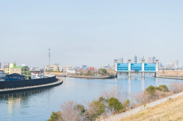 なお、これまでお伝えした隅田川の日本橋水門や亀島川水門は、都内ならではのオフィスビルや高層マンションとのショットを楽しめるスポットですが、自然とのコントラストを楽しむなら荒川がオススメです。