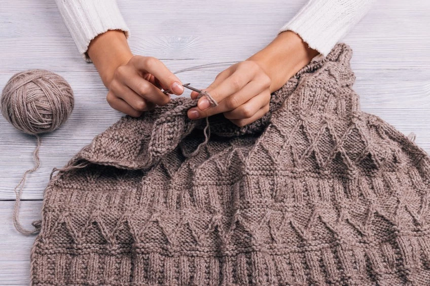 セーターとは、身頃や袖などのパーツに合わせて形を編み、それを縫い合わせて作るもの。