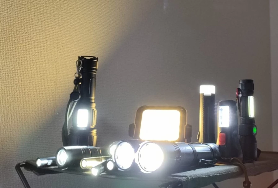 懐中電灯やランタン、ヘッドライトなどの非常用ライト。