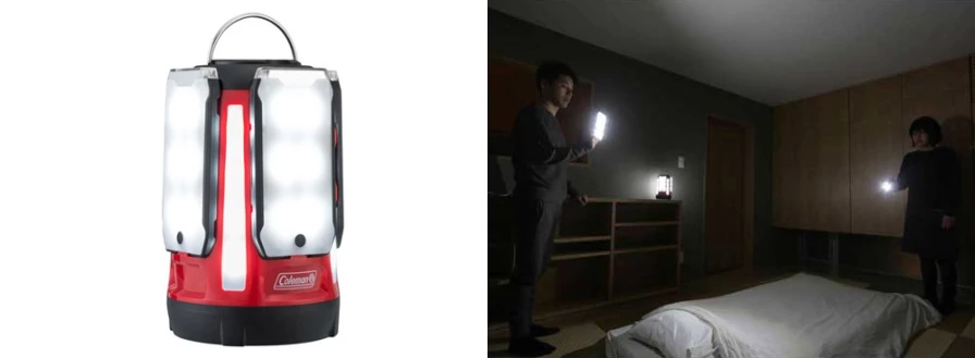 変わったタイプのランタンですが、4つの発光パネルを取り外すことができる優れもの。トイレに行くときなど、パネルを取り外して懐中電灯の代わりに使用できます。