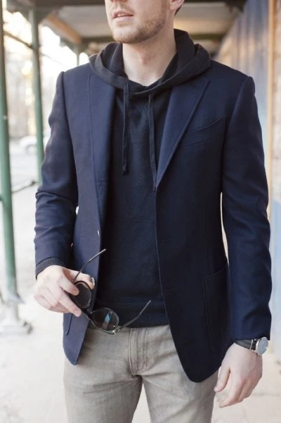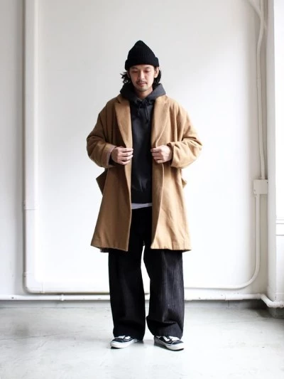 上に着用するアウターはどんなものでも相性抜群。ブルゾンやチェスターコート、スエードコードなどなど、シンプルで無駄のないデザインのアウターと合わせれば、パーカーの首元のボリュームの邪魔をせずスッキリとまとめてくれますよ。