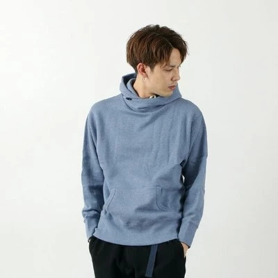 ハイネックタイプのパーカーは首周りにボリュームが出るために顔をスッキリ見せてくれ、小顔効果を期待できる一着。さらに首元を温めてくれるため、冷えを防いでくれます。