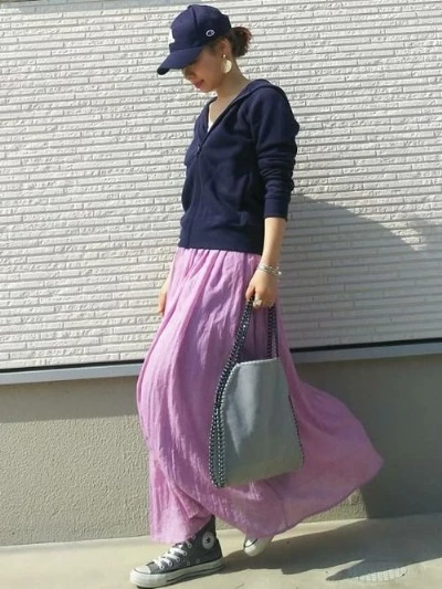 女性であれば、インナーにキャミソールやタンクトップを合わせれば、ヘルシーな抜け感を演出できちゃますね。スポーティーなパーカーにロングスカートを合わせたり、パステルカラーのパーカーを合わせたりと、女性ならではのコーディネートが楽しめます。