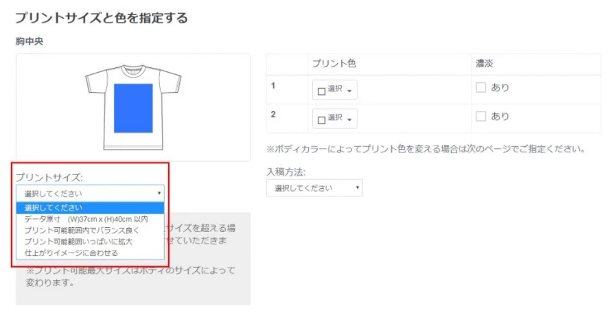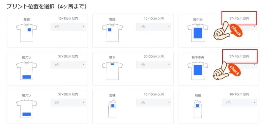 デザインとボディの組み合わせによって程よいプリントサイズは異なりますので、自分で判断できない場合はこれを選ぶと良いでしょう。