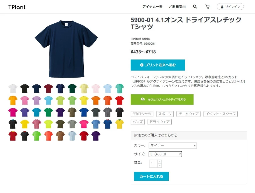 一方の【ユナイテッドアスレ】5900-1なら、1枚あたり500円前後の価格水準ですので、いかにコスパに優れているかは、改めて説明をする必要もないかと思います。ただし、この価格はもちろん無地購入での金額であり、デザイン性は皆無ですので、スポーツブランドのTシャツとの単純比較はできない点はご理解ください。